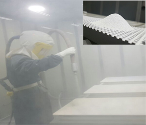 제품표면에 표면조도(거칠기)를 형성하여 생산공정시 발생되는 오염물의 흡착을 효과적으로 증대