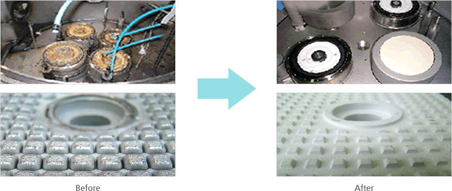 제품표면에 표면조도(거칠기)를 형성하여 생산공정시 발생되는 오염물의 흡착을 효과적으로 증대